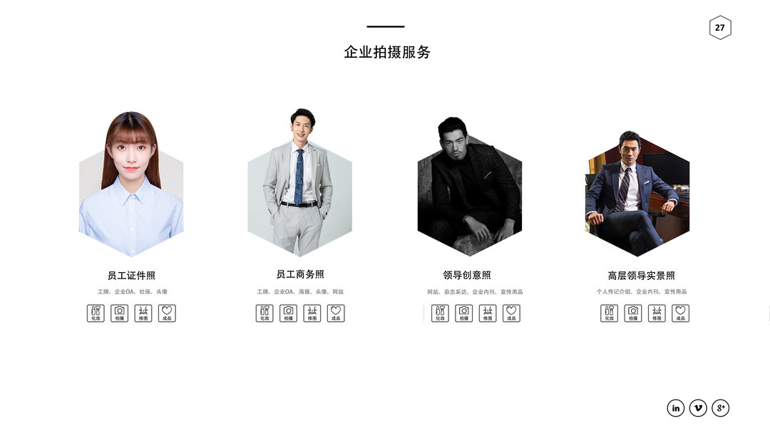 可在员工证件照,员工商务照,领导创意照和高层领导实景照中按需选择